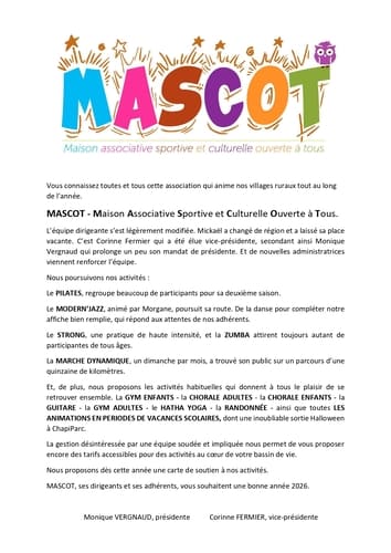 TARIF ANNUEL 2020-2021 DE LA CARTE MASCOT